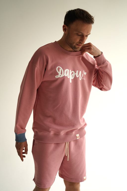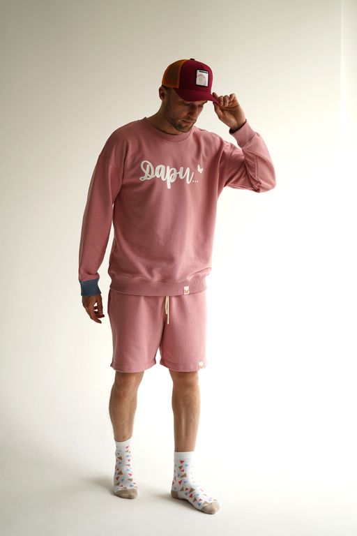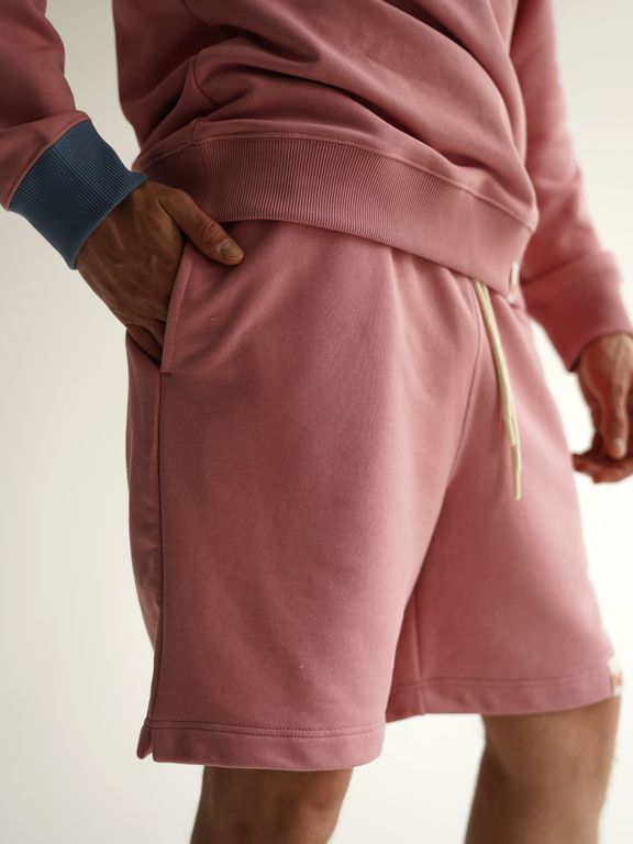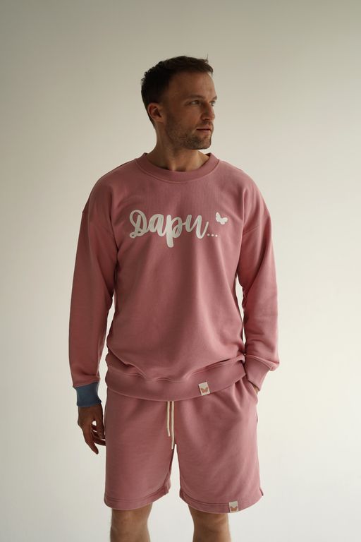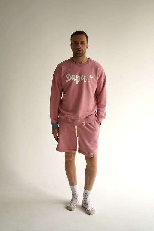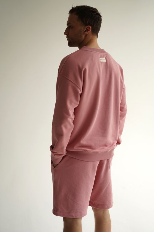 Стильный и комфортный мужской костюм розового цвета, состоящий из свитшота оверсайз и шорт. Этот универсальный комплект идеально подойдёт для повседневной носки и активного отдыха.