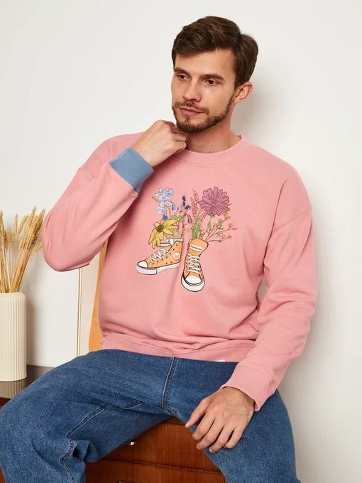МУЖСКОЙ СВИТШОТ РОЗОВЫЙ "ЦВЕТОЧНЫЕ КЕДЫ"