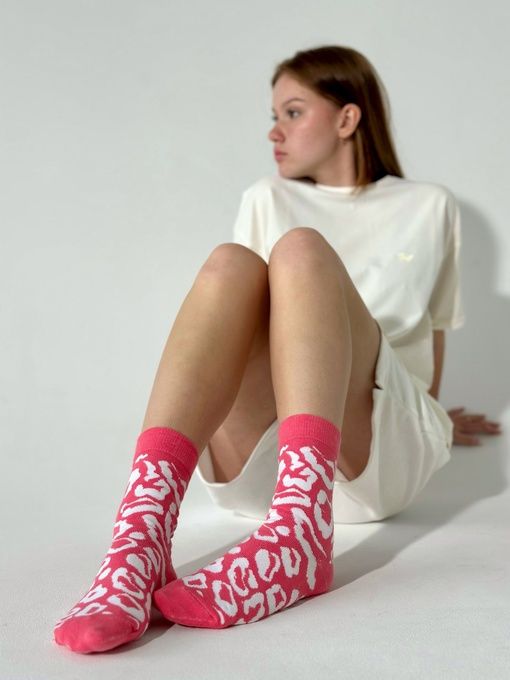 Носки "Леопард розовый" от бренда Приятно – добавит вашему образу необычность и индивидуальность. Носки с таким мягким леопардовым принтом станут ярким акцентом в вашем гардеробе и подчеркнет ваш стиль.