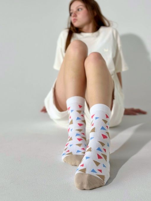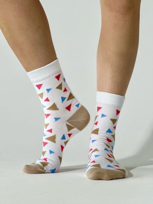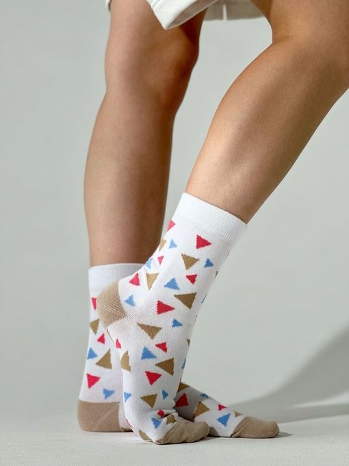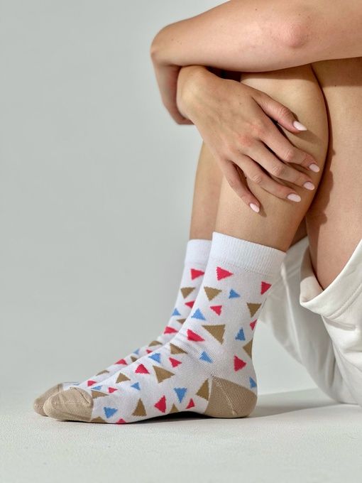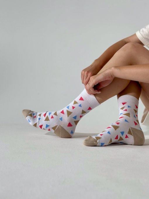 Носки "Треугольнички" от бренда Приятно – это не просто обычные носки, это настоящий стильный аксессуар, который добавит яркости и индивидуальности вашему образу.