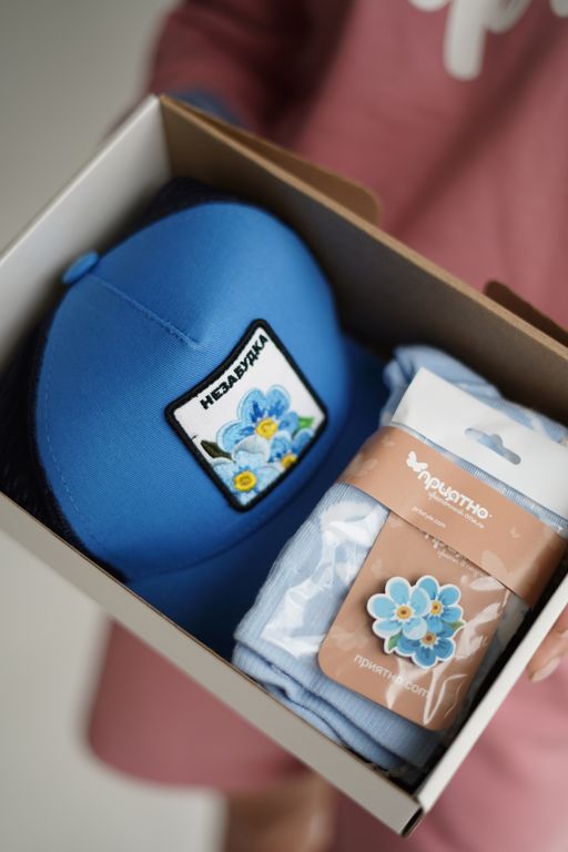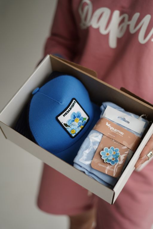 Набор для НЕЕ: пион, незабудка и ранункулус (на выбор) – бейсболка с изображением нежных цветов , значок в виде цветка и пара носков с нежным рисунком. Будьте уверены, ваша вторая половинка оценит вашу заботу и внимание!
