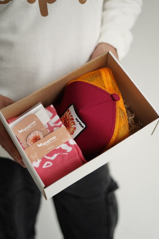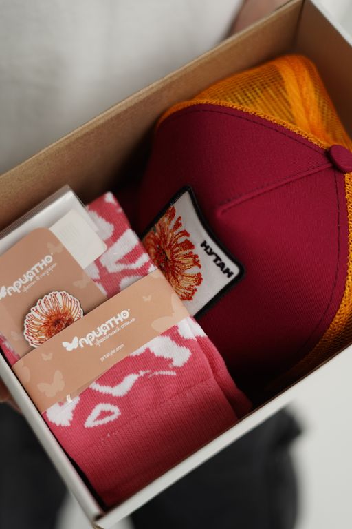Подарочный набор с бейсболкой, значокм и носками от бренда Приятно – добавит вашему образу необычность и индивидуальность! А еще, это отличный подарок для любого праздника!