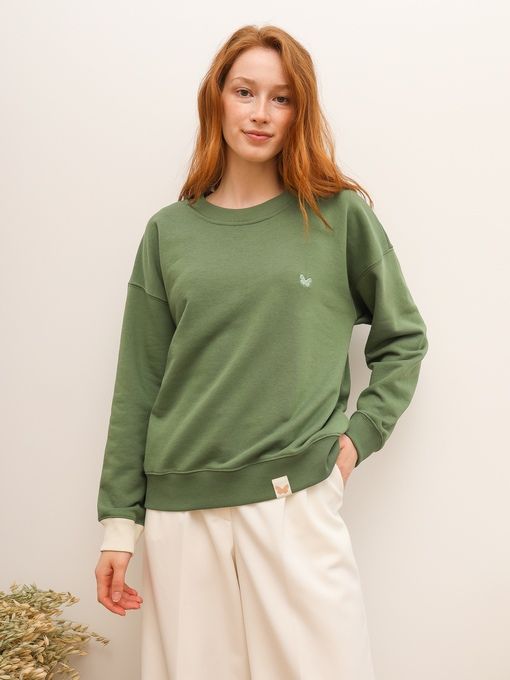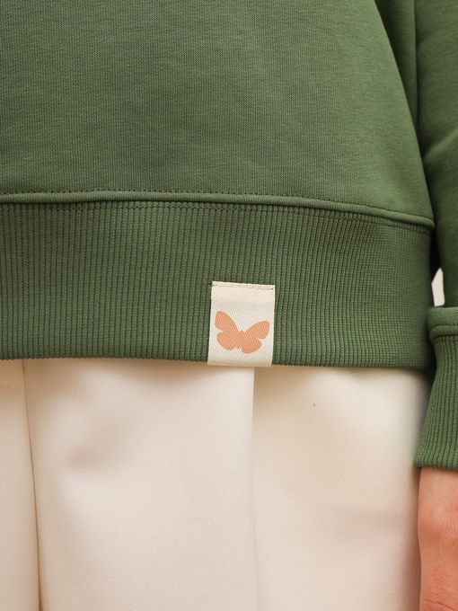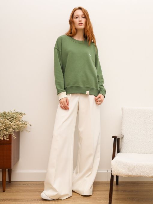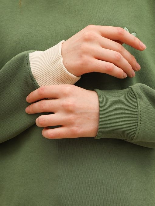 Дизайн свитшота - с необычной изюминкой в виде разных манжетов, как олицетворение нестандартности и асимметрии в нашей жизни.
